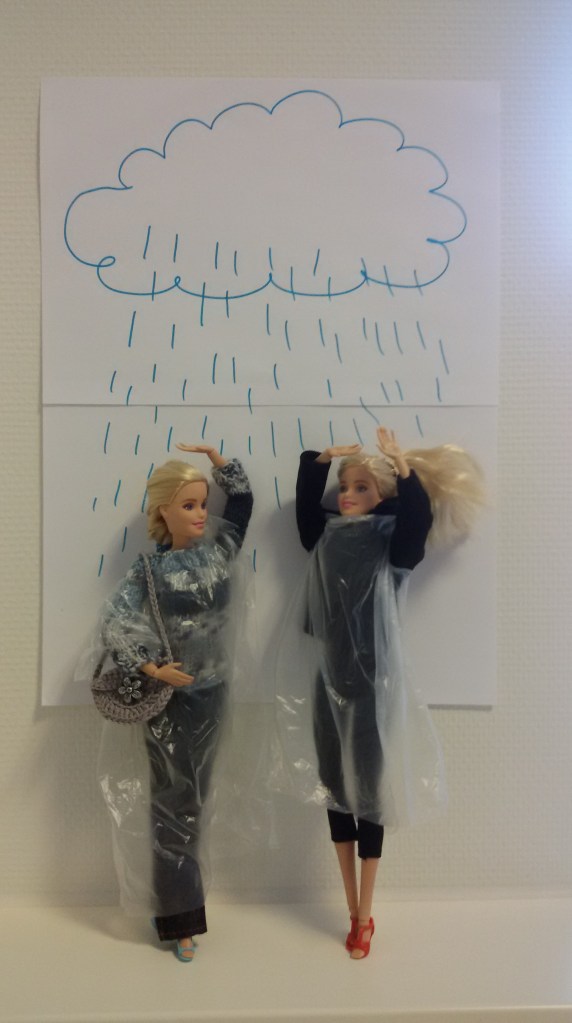 Lathyrus & Lygulariah houden niet van natgeregend haar. En ook niet van natgeregende benen. Wanneer zai op een zonnige dag ien hun favoeriete winkel aan het shoppen zijn, zoeken zai naar een oplossing voor de nattigheden die die regen met zich meebrengt.