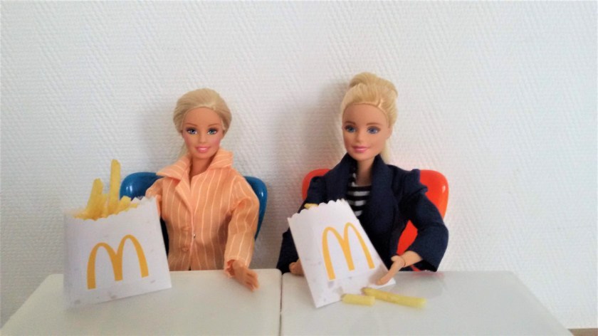 Ze zoeken een gezellig plekje maar alles is vol. Gelukkig zijn er boven nog wat plaatsen voor het raam. Kunnen ze mooi naar de file kijken. Het duurt even maar dan komt er een vriendelijke jongeman hun bestelling brengen. De dames testen en keuren alles uitvoerig en komen tot de conclusie dat de kwaliteit van dit restaurant gelijk is aan die van de andere filialen in het land. “Het ies lekker hoor, vooral die vegetarische kiepboerger kunnen wai van harte aanbevelen!”