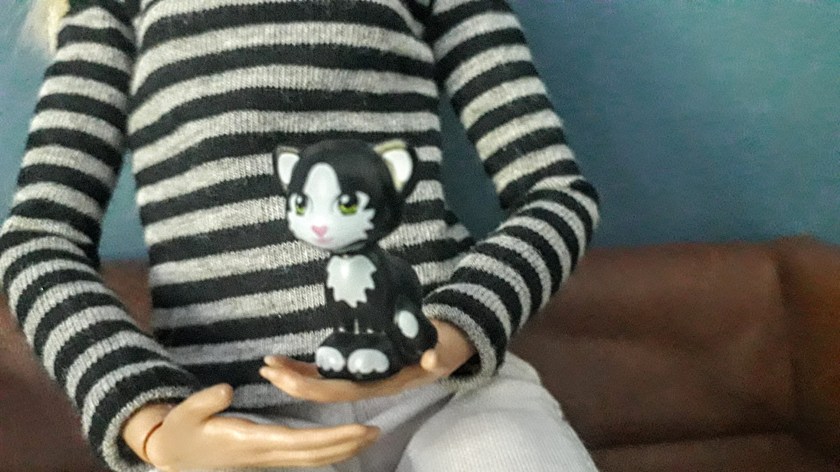 Het lekkers trekt een nieuwsgierige wesp aan die door of onder de klapdeurtjes van de cabine naar binnen is gevlogen en probeert om ook een hapje te veroveren. Lathyrus duwt gauw het laatste hapje van de koek in haar mond en spoelt deze weg met nog een laatste flinke slok cappuccino. Ze zet het bordje en het kopje zo ver mogelijk bai zich vandaan. “Geniet jai maar lekker van de kroimels wesp” zegt ze.